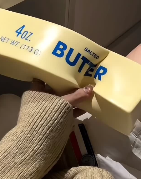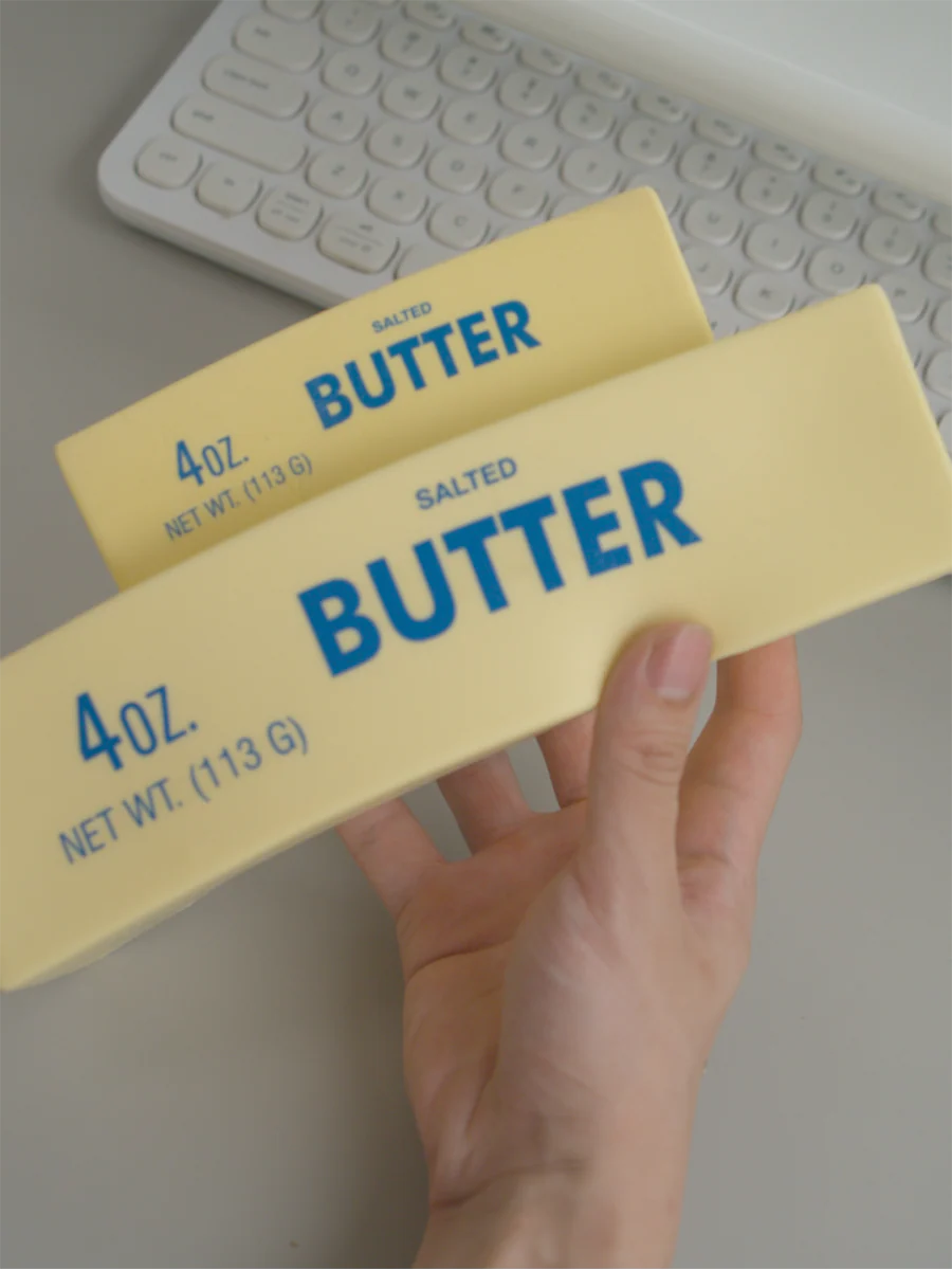 "Looks exactly like a real stick of butter — even the packaging details are spot on. I keep it on my desk at work and it’s my go-to stress toy during long calls. 10/10 recommend! HAD to get the big one ofc"